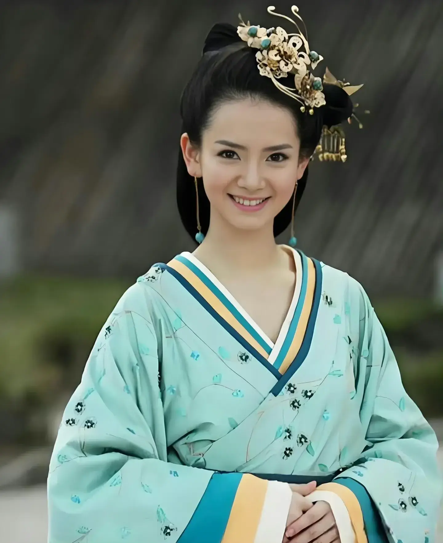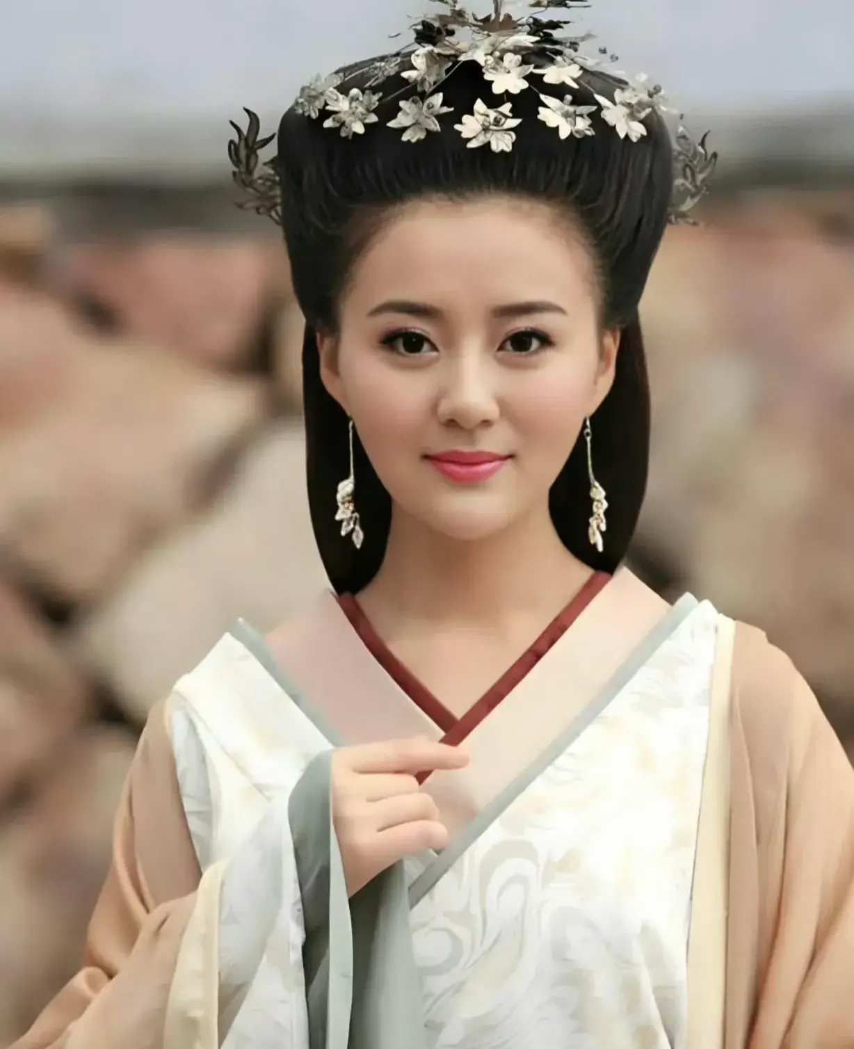 服饰以素纱襦裙、珍珠额饰为主,淡雅配色凸显汉代风韵,满头步摇却不显俗艳。